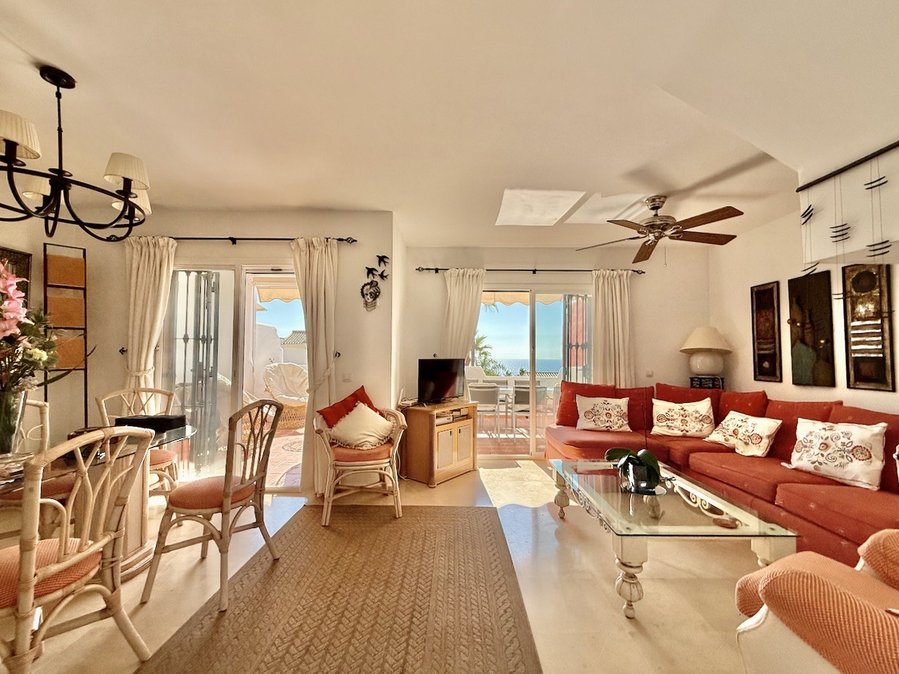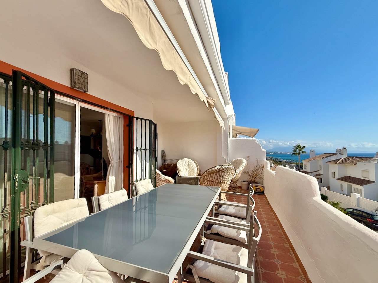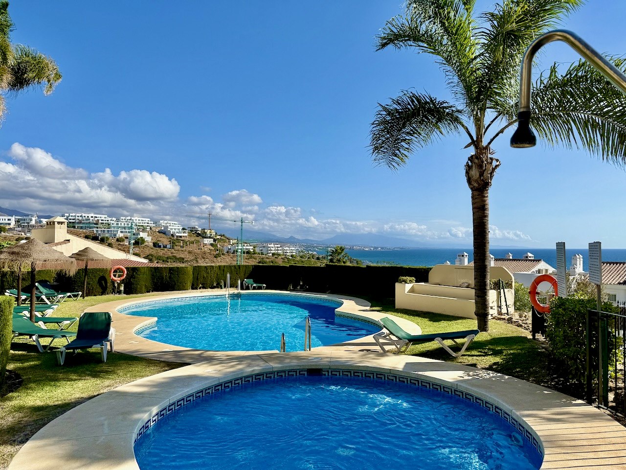 Su ubicación es especialmente atractiva: la playa se encuentra a tan solo 10–15 minutos a pie, con fácil acceso a restaurantes locales y al paseo marítimo. En pocos minutos en coche se llega a Estepona, Sotogrande y a reconocidos campos de golf, mientras que los aeropuertos de Málaga y Gibraltar son cómodamente accesibles.