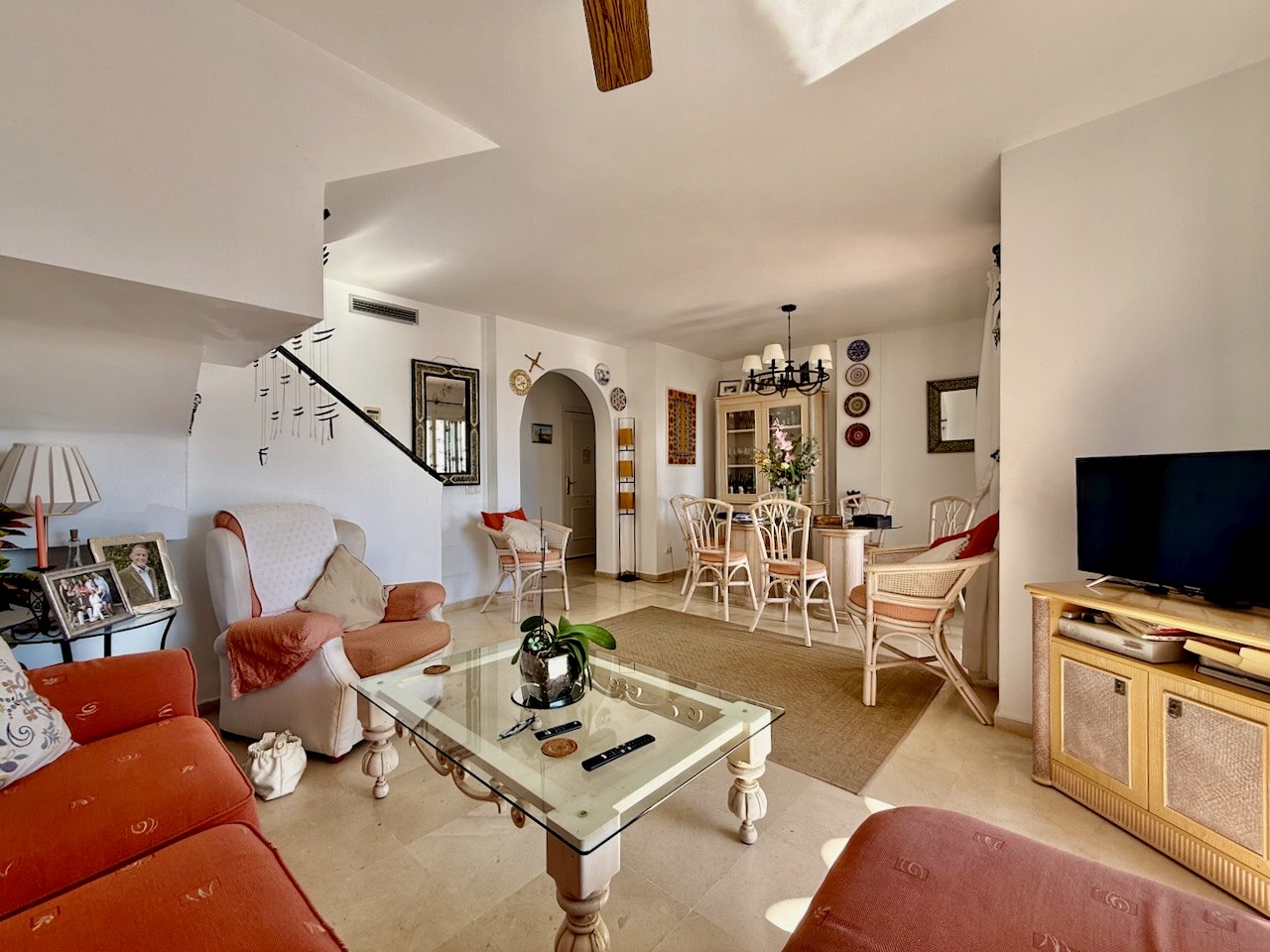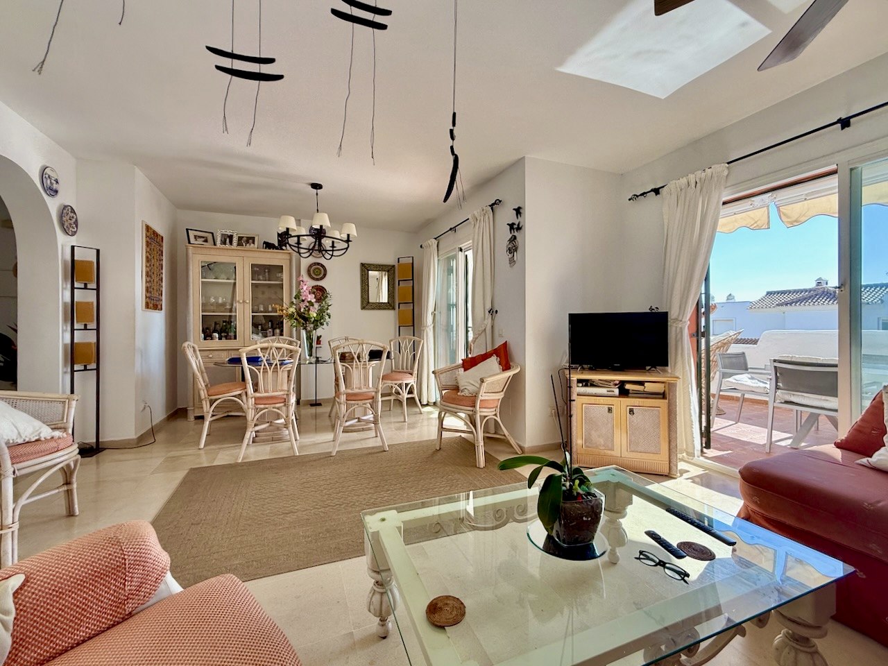 En una de las zonas residenciales más consolidadas y tranquilas de la costa de Casares, se encuentra esta luminosa casa adosada de tres plantas que invita a disfrutar plenamente del auténtico estilo de vida mediterráneo. Sus vistas abiertas y panorámicas al mar, visibles desde varias terrazas, junto a sus generosos espacios exteriores, convierten esta propiedad en un refugio ideal tanto para residencia habitual como para escapadas prolongadas.