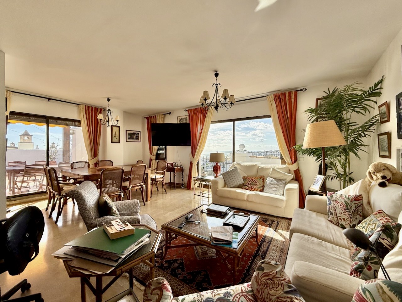 Desde este privilegiado enclave, las vistas son completamente envolventes y abiertas en ambas direcciones de la costa, abarcando el mar Mediterráneo, el puerto deportivo, el campo de golf de La Duquesa y las montañas circundantes, un paisaje que acompaña cada momento del día con luz natural y sensación de libertad.
