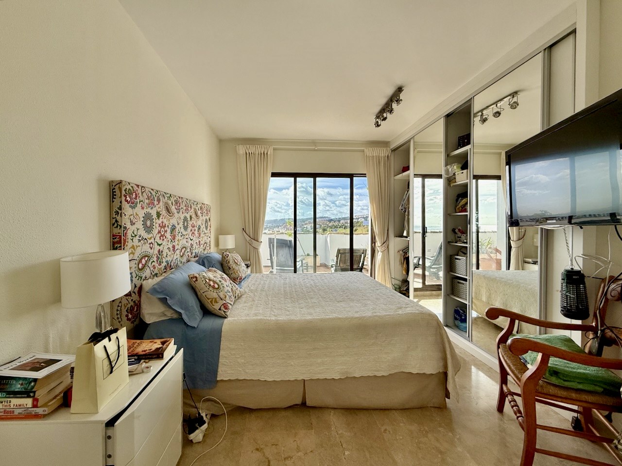 El interior es luminoso, cómodo y equilibrado. Un amplio salón-comedor con acceso directo a la terraza principal se convierte en el corazón de la vivienda. La cocina totalmente equipada, junto con tres dormitorios y tres baños, ofrece funcionalidad y confort, complementados por suelos de mármol, aire acondicionado, armarios empotrados, lavandería y ascensor con acceso directo.