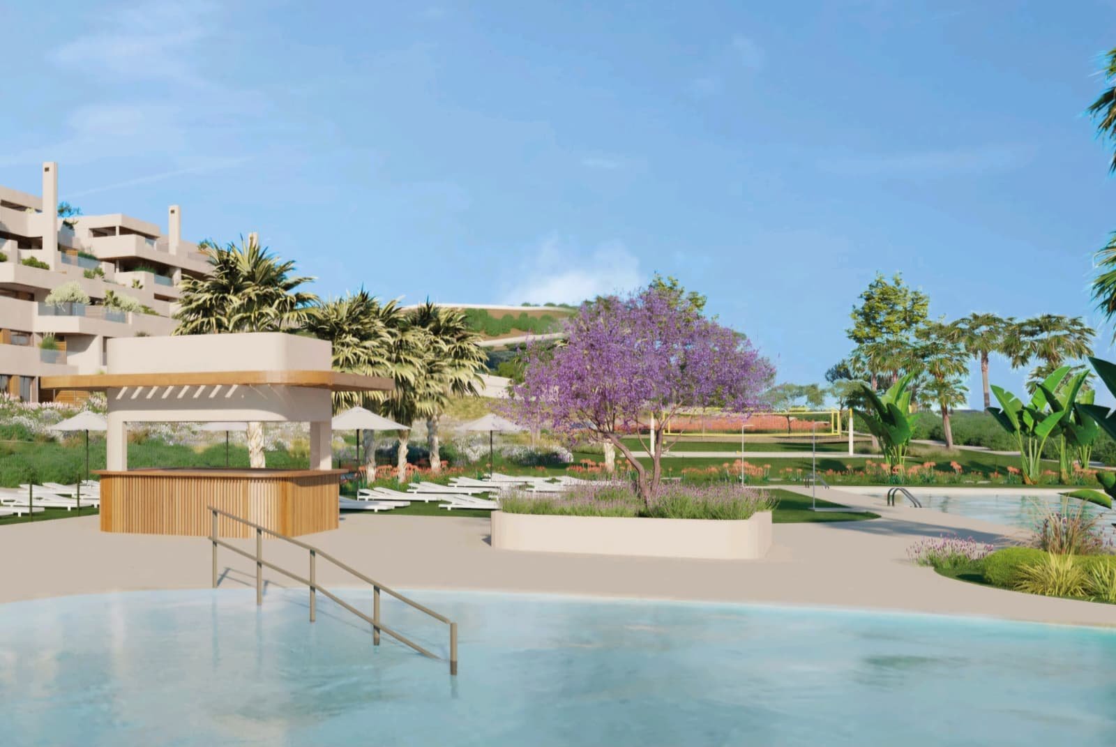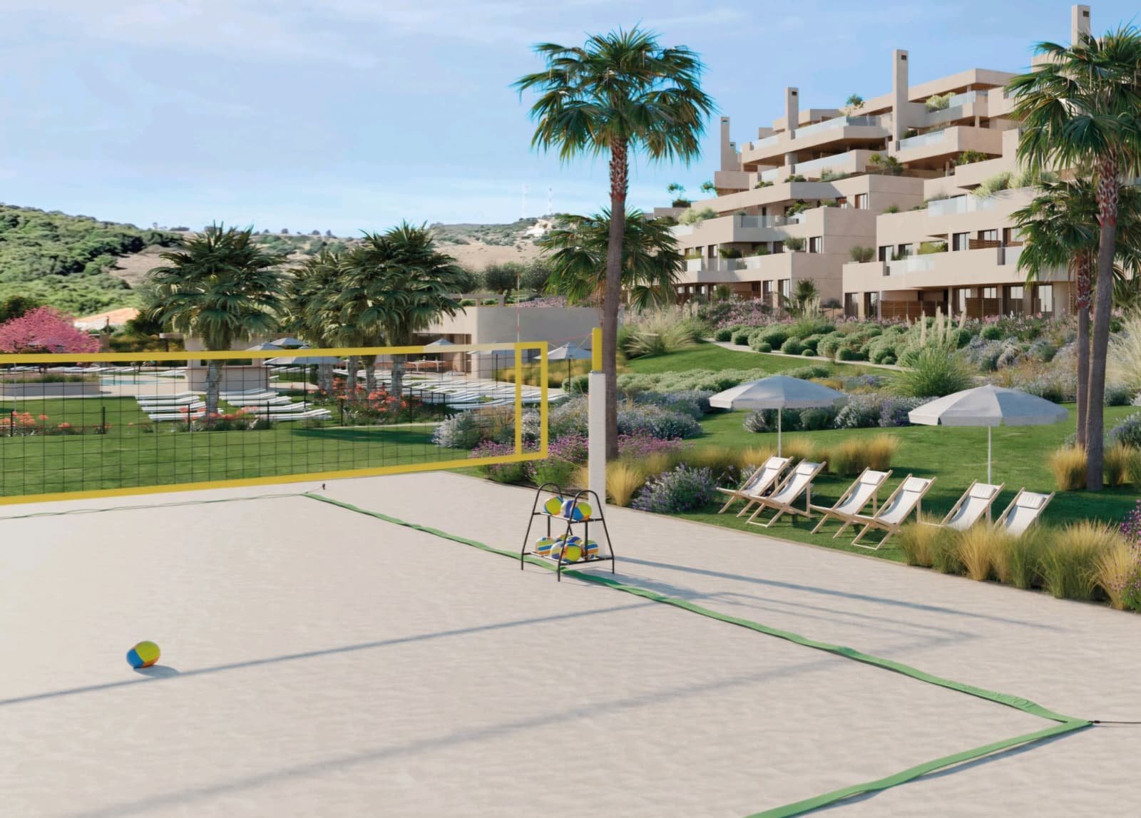 La urbanización ofrece completas zonas comunes para todos los estilos de vida, que incluyen piscina exterior para relajarse al sol, spa, área de meditación, gimnasio totalmente equipado, pista de vóley playa, circuito de running y espacio de coworking. Además, cuenta con zona de picnic, pool bar, parque infantil y piscina para los más pequeños, creando un entorno ideal tanto para familias como para quienes buscan bienestar y ocio en un mismo lugar.